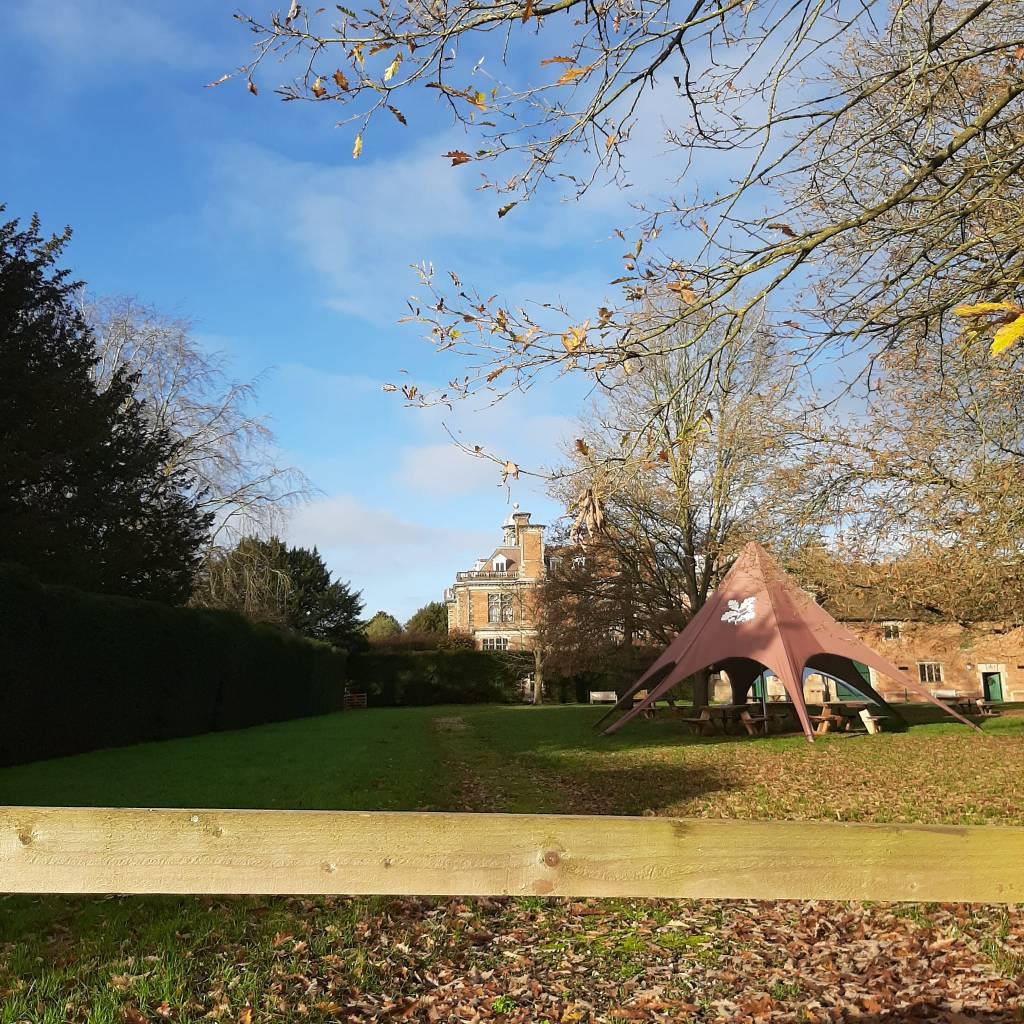 I vowed to treat the journey as part of the adventure, easier as the sun was brilliantly shining, it was a glorious day. I had found myself a lovely dog friendly cafรฉ with walks along the route, like being on holiday. This halfway stop was at Sudbury, where the Childrensโ Country house and museum, stands, a National Trust country hall