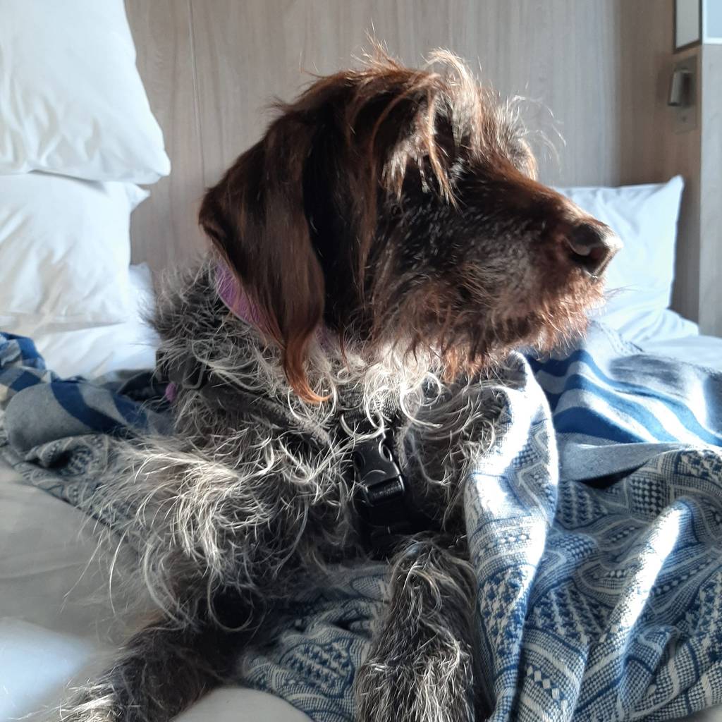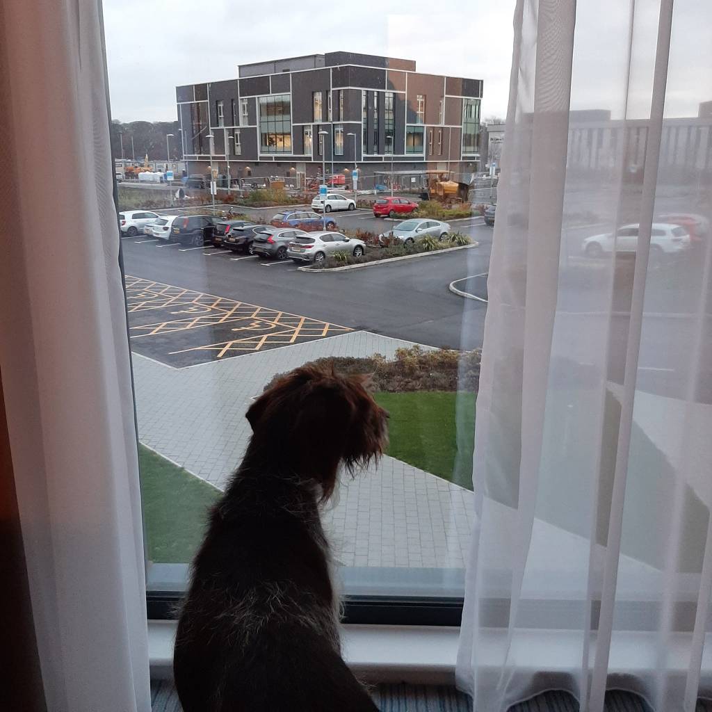 These memories and thoughts flit through my mind as Teya and I walk past the impressive building and head back to the hotel for breakfast. Sausages for Teya go down well. In the lobby where we had to eat our breakfast due to the dining room not being dog friendly at all, I meet a couple with a lovely Airedale Terrier. They turn out to be the brother and sister in law of Tracy, who volunteers for the charity that brings dogs to the UK from (including Teya), and many, many other dogs over from Cyprus. Tracy is a whirlwind of a fundraiser, and has ceaseless energy and commitment to raising money for these beautiful dogs. Such a random chance meeting that makes me unreasonably cheerful.